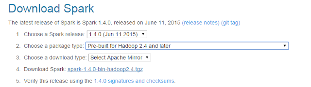 Downoad spark package, you can choose 2.4 or 2.6 based on your requirement. For example, a sampe spark-1.4.0-bin-hadoop2.4.tgz can be downloaded here.